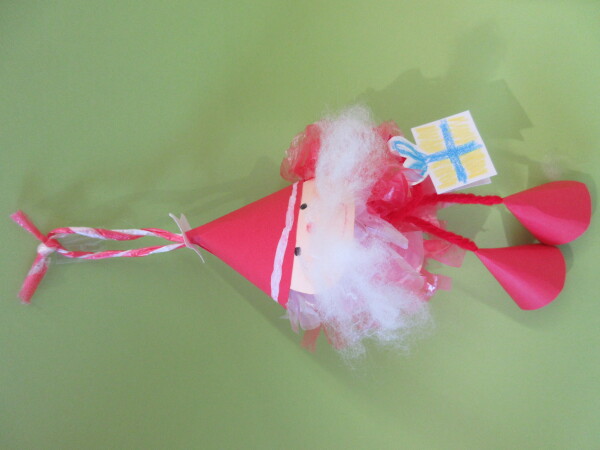 - スズランテープのぽんぽんと色画用紙でサンタの人形を作ります。。