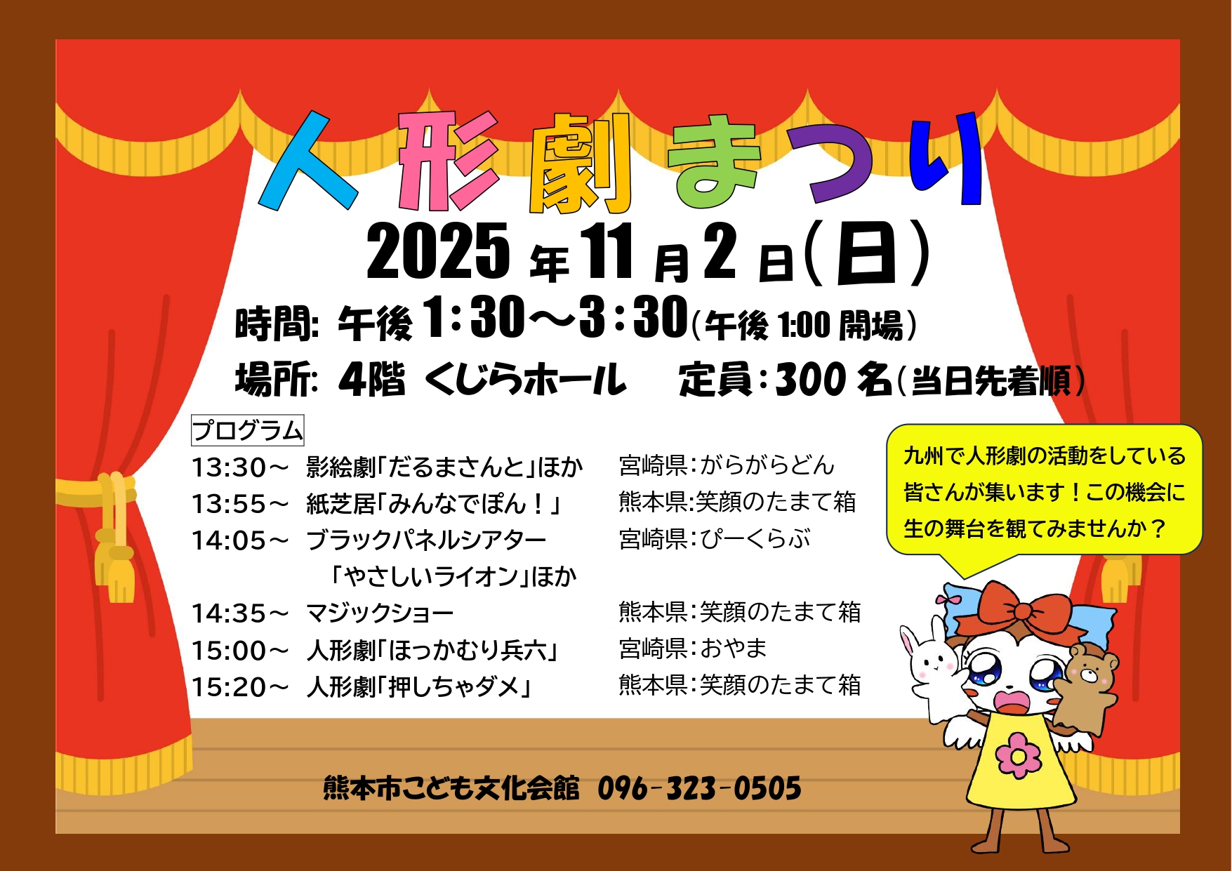 11月2日(日)に「こどぶん人形劇まつり」を開催いたします。