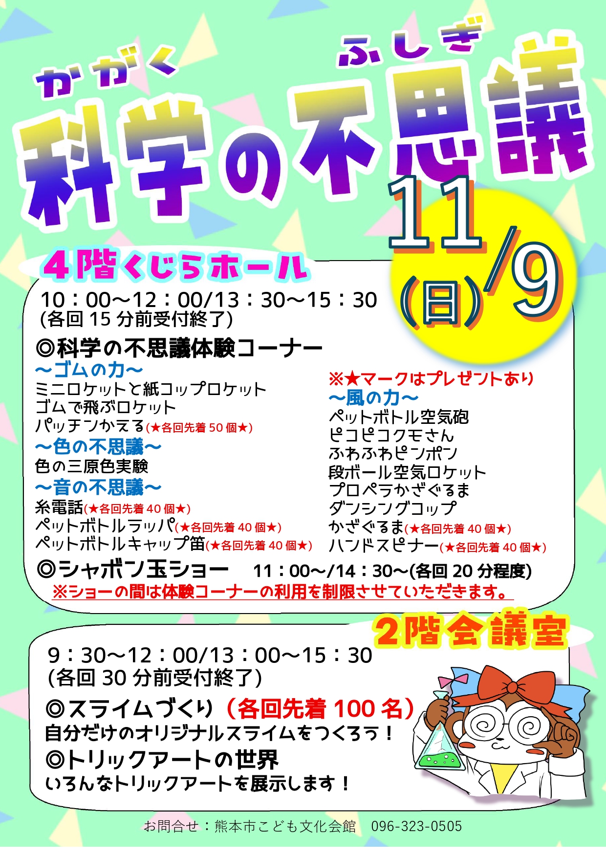 11月9日(日)に『科学の不思議』イベントを開催いたします。