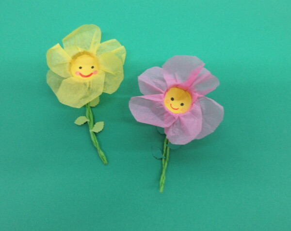 - おはながみと色画用紙を使って花をつくり、きつつきの部屋に飾ります。