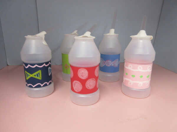 - ピルクル(乳酸菌飲料)の容器を利用して、ホーホー鳴る笛をつくります。