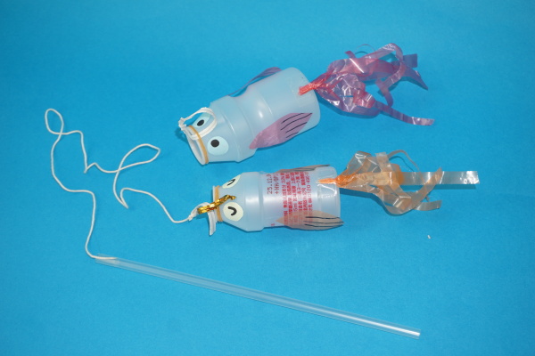- ヤクルト容器、ストロー等を使って金魚釣りのおもしろ工作をつくります。